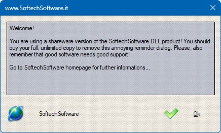 Then if you decide to use this product into your application you must buy the full DLL version directly from SoftechSoftware.